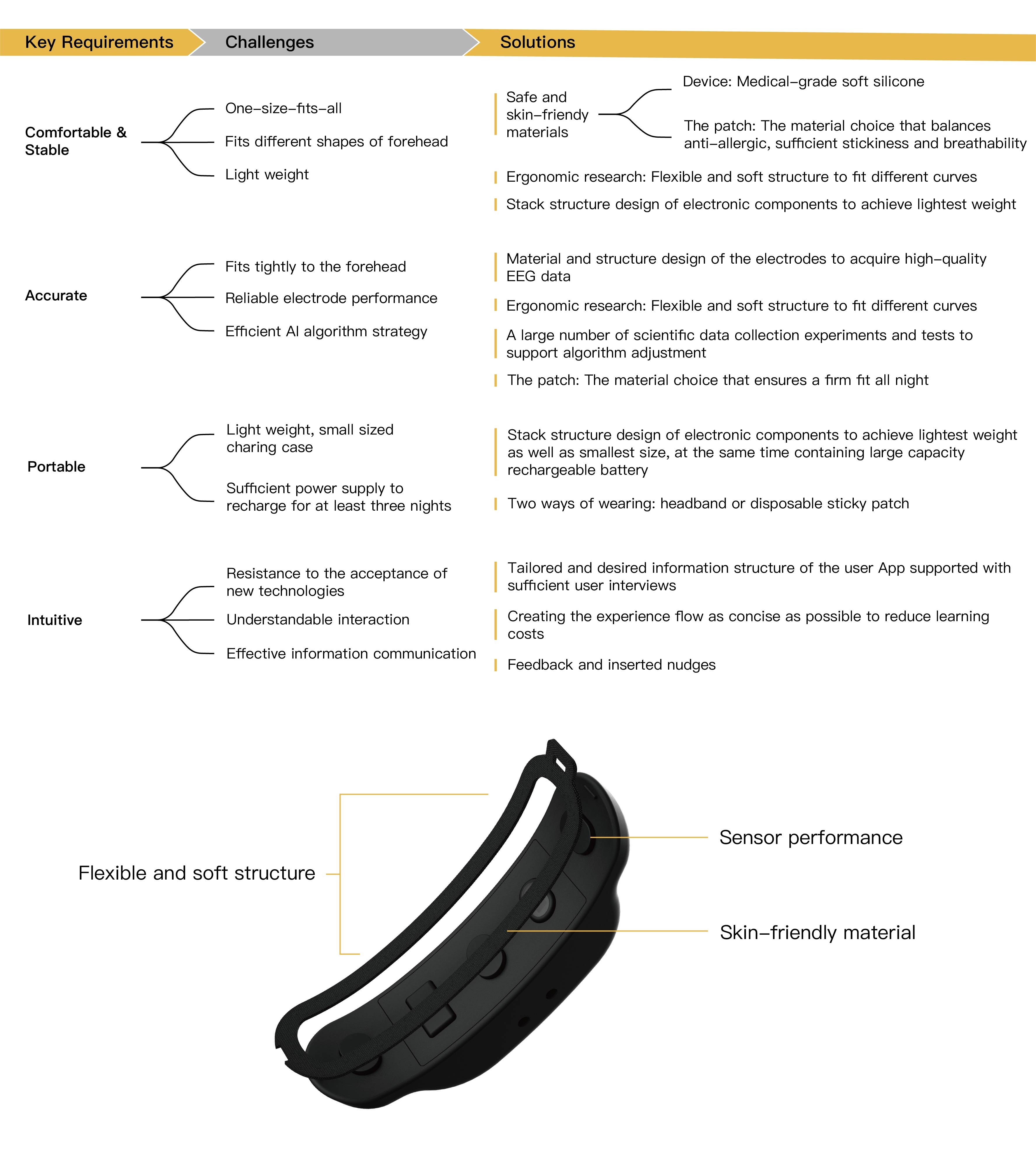 - Real-time and tailored sleep intervention - Using sound waves to extend the duration of deep sleep and improve sleep efficiency;